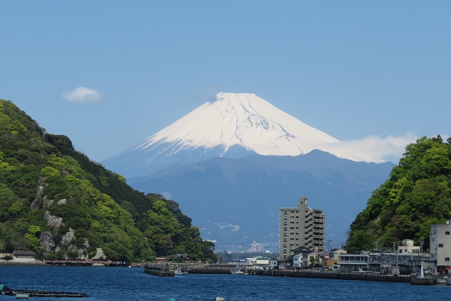 今日は春らしい暖かな陽気で、三津浜からの富士山もすっきりと良く見えました。