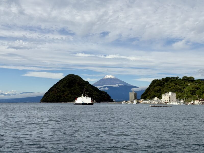 朝は雲に隠れて見えませんでしたが、やっと雪化粧の富士山を見る事ができました。