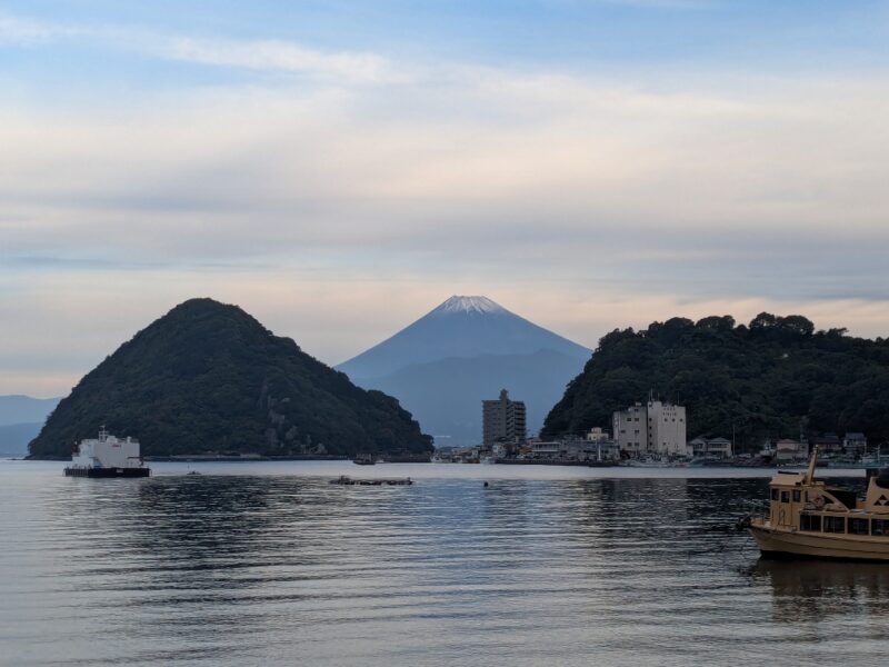 ひんやりとした空気の中、富士山は美しい姿を見せてくれています。