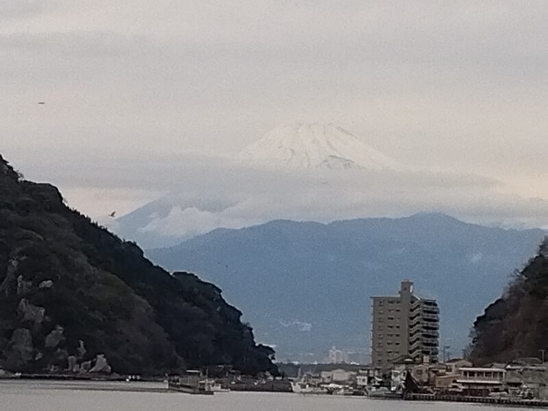 朝雲に隠れていました富士山がうっすらと姿を現わしてくれました。